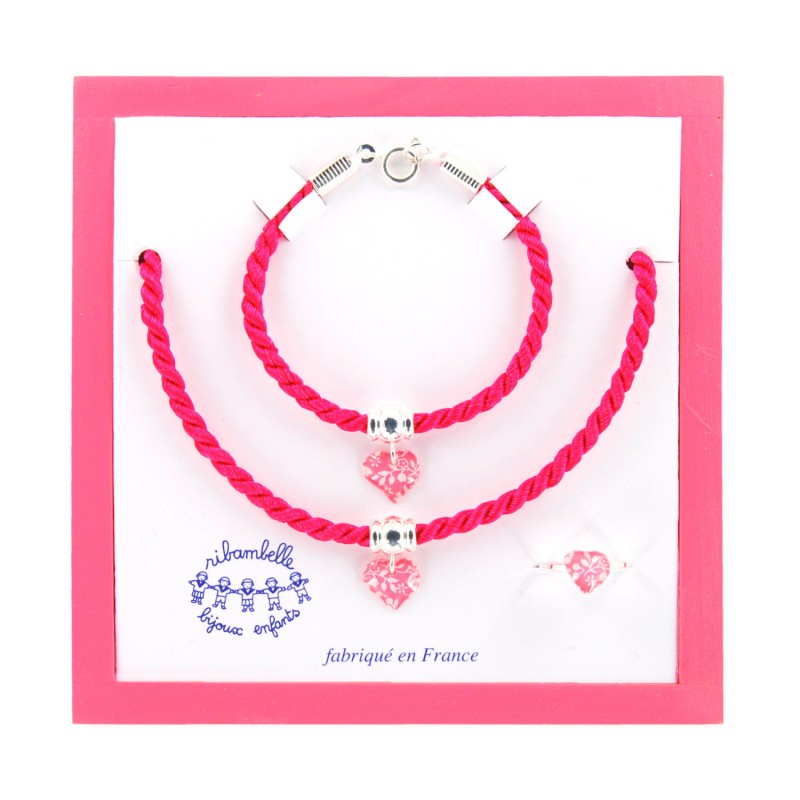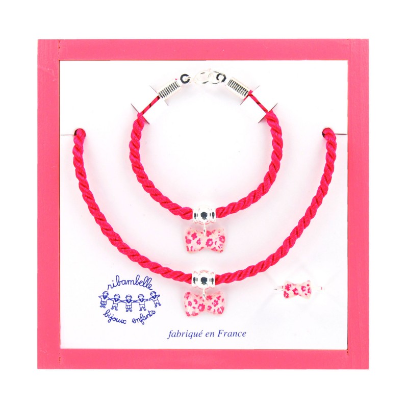 Ensemble composé d'un bracelet cordelière, d'un tour de cou cordelière et d'une bague réglablePrésenté dans un coffret bois,il est livré avec son emballage cadeau3 tailles au choix : 2 à 4 ans, 4 à 8 ans, 8 à 12 ans